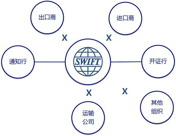 解决多参与方业务的信任问题,现在是通过建立第三方机构完成的,例如上述信用证业务,就是通过SWIFT组织(环球同业银行金融电讯协会)的SWIFT系统开立信用证,银行和其他金融机构通过它与同业交换电文来完成金融交易,由 SWIFT 进行银行间转发。