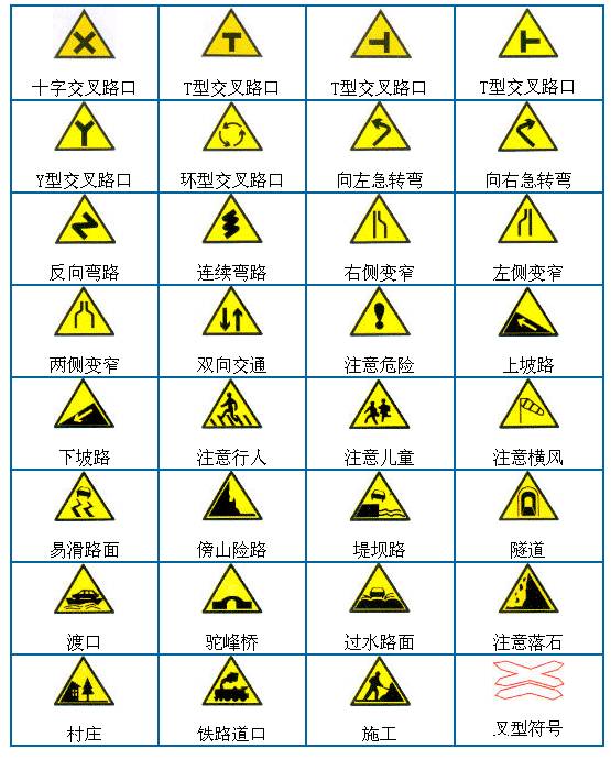 警告标志:颜色为黄底、黑边、黑图案,形状为顶角朝上的等边三角形。