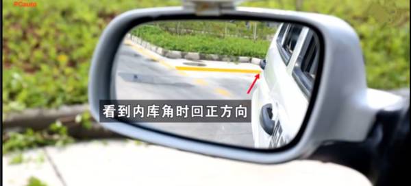 然后观察左侧后视镜,当从左侧后视镜里看到内库角的时候迅速回正方向。